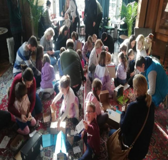 The ZSD donated a Christmas tree to Pangea Haus, which was decorated by the parent-child group. Local daycare centers were invited to participate by adding their handmade crafts to the tree, drawing dozens of onlookers and neighbors who admired the brightly lit tree throughout the month.